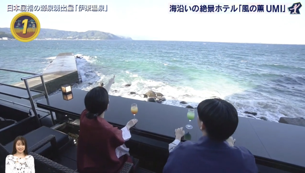 テレビ東京「出没!アド街ック天国」の「【伊東温泉】伊豆の東!豊富な湯量を誇る日本屈指の“湯の里”」特集で、「風の薫UMI」のオーシャンビューや貸切風呂をご紹介いただきました!